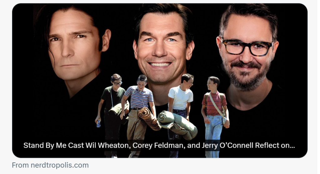 Read MoreOK FOLX THE TIME HAS FINALLY ARRIVED! AFTER 40 LONG YRS, STAND BY ME RETURNS 2 THEATERS IN A FAIRLY WIDE RELEASE OF 500 SCREENS ACROSS US & CANADA 2DAY! SO GO C IT ON A BIG SCREEN! HERES 1 MORE FUN INTERVIEW FEAT ALL 3 OF US: Source: Nerdtropolis